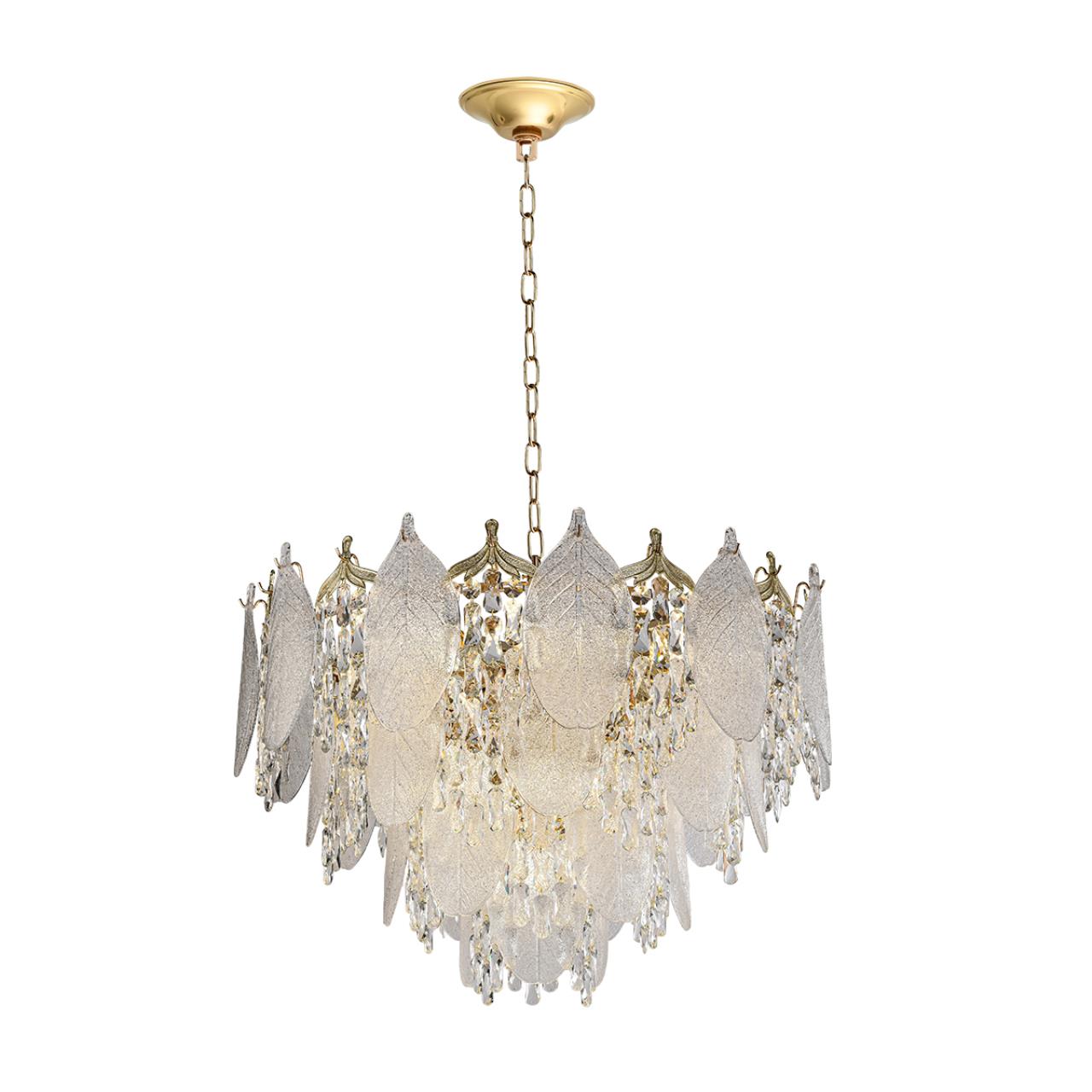 Линия Tears — это утонченное сочетание фактурного стекла в виде лепестка и россыпей хрустальных подвесок. В линии представлены нежные и изящные модели: люстры в двух диаметрах 505 см и 760см, овальная модель длиной 1035см, бра и две люстры больших размеров диаметром 1225 см ( высота 1910-3870см) и 780 см( высота 2100-4050см).