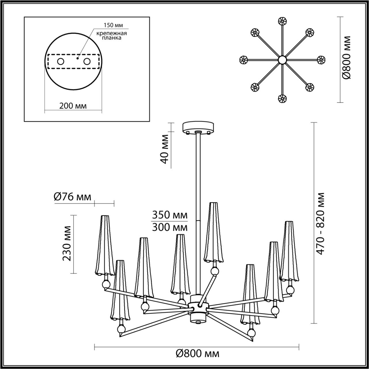 Минималистичная линия Fungo, вдохновленная природными формами. Строгий черный матовый металл дополнен хромированными шарами. Главный декоративный элемент серии — плафоны из толстого стекла сделанные вручную, их форма кому-то напоминает зонты, а кому-то драпированную ткань. Но на самом деле вдохновением при создании серии Fungo послужили потрясающе красивые формы флоры. Люстра регулируется по высоте с помощью наборной штанги.