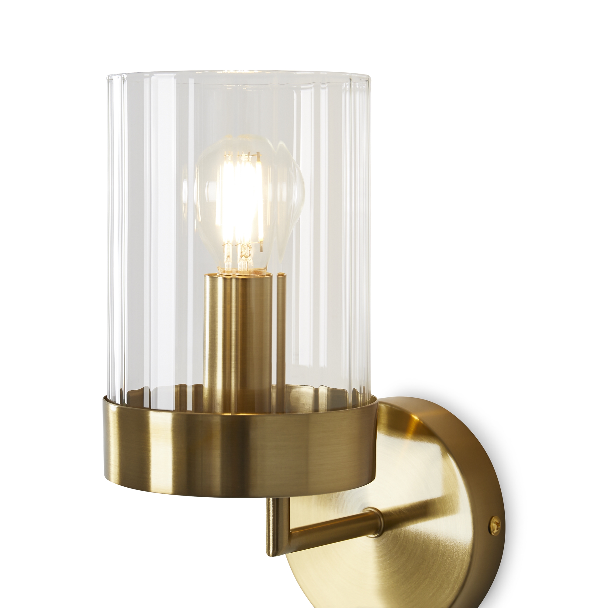 Арматура металл. Цвет арматуры латунь. Плафоны из рельефного стекла в форме цилиндра направлены вверх. Потолочные светильники подойдут для помещений с низкими потолками. Источник света лампа. Цоколь E14.