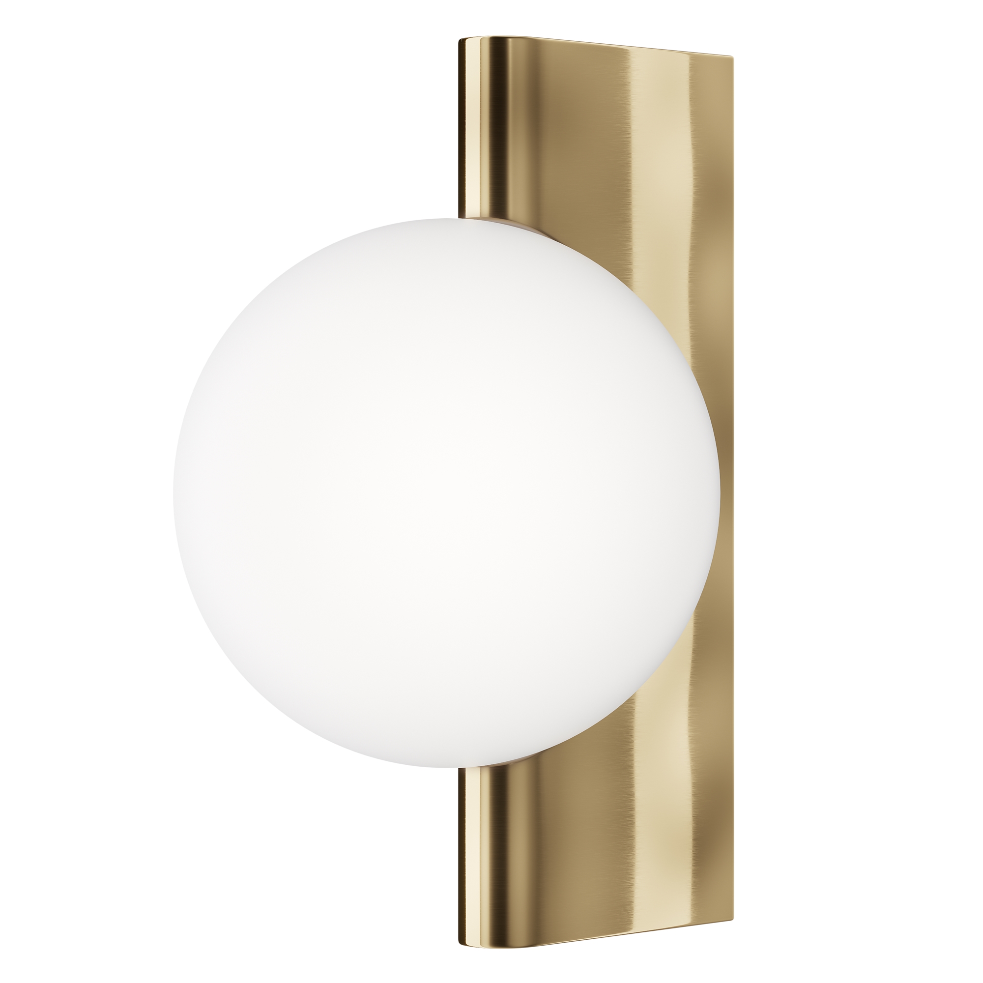 Арматура из металла, оттенки – матовый черный, латунь, хром. Плафон-сфера – стекло, цвет – белый. Скрытое крепление. Оригинальная геометрия в дизайне. Чистый теневой рисунок