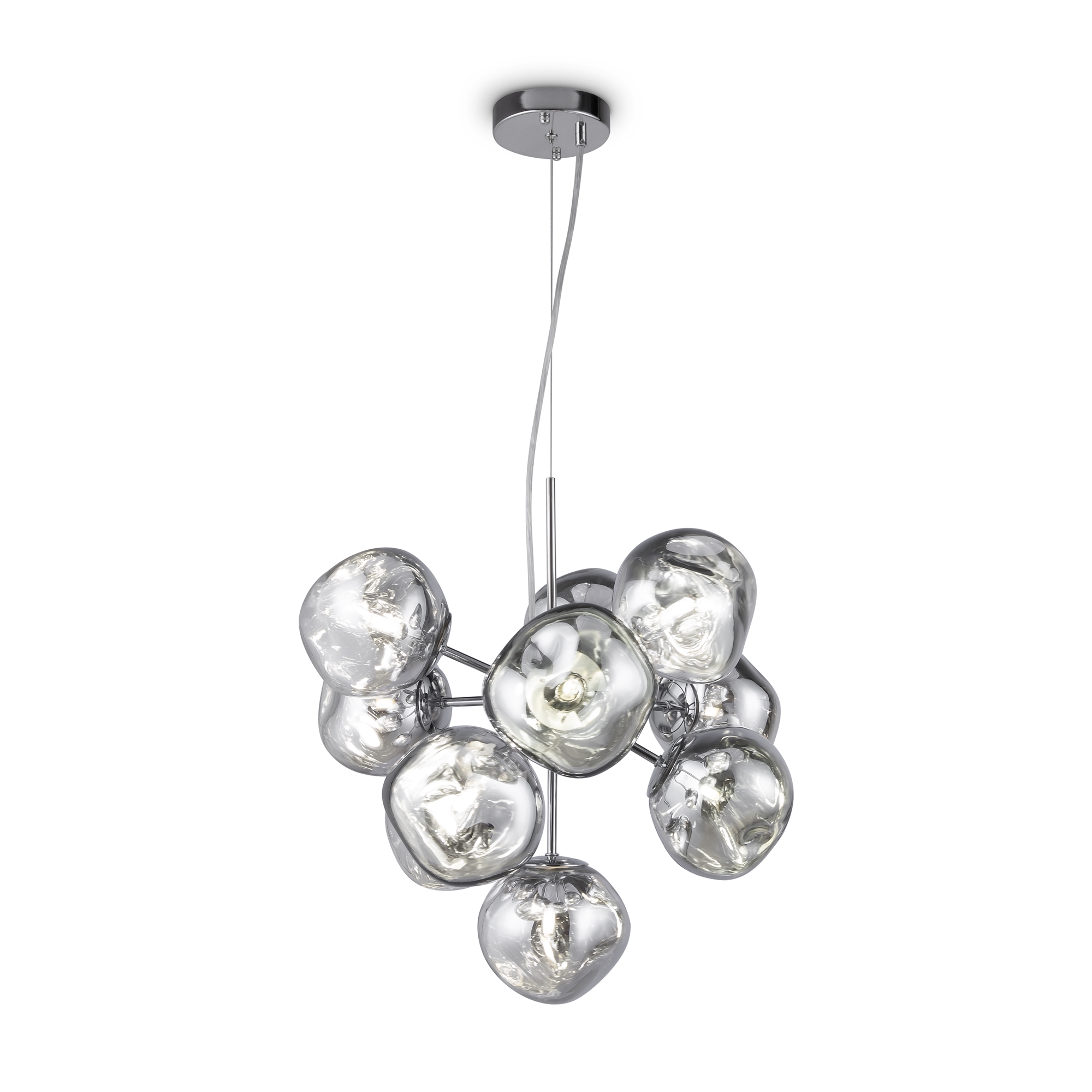 Арматура — металл, цвет — хром. Шарообразные плафоны с зеркальным эффектом и переливами. Материал - стекло с серебристым напылением. Источник света — лампа с цоколем — E27.