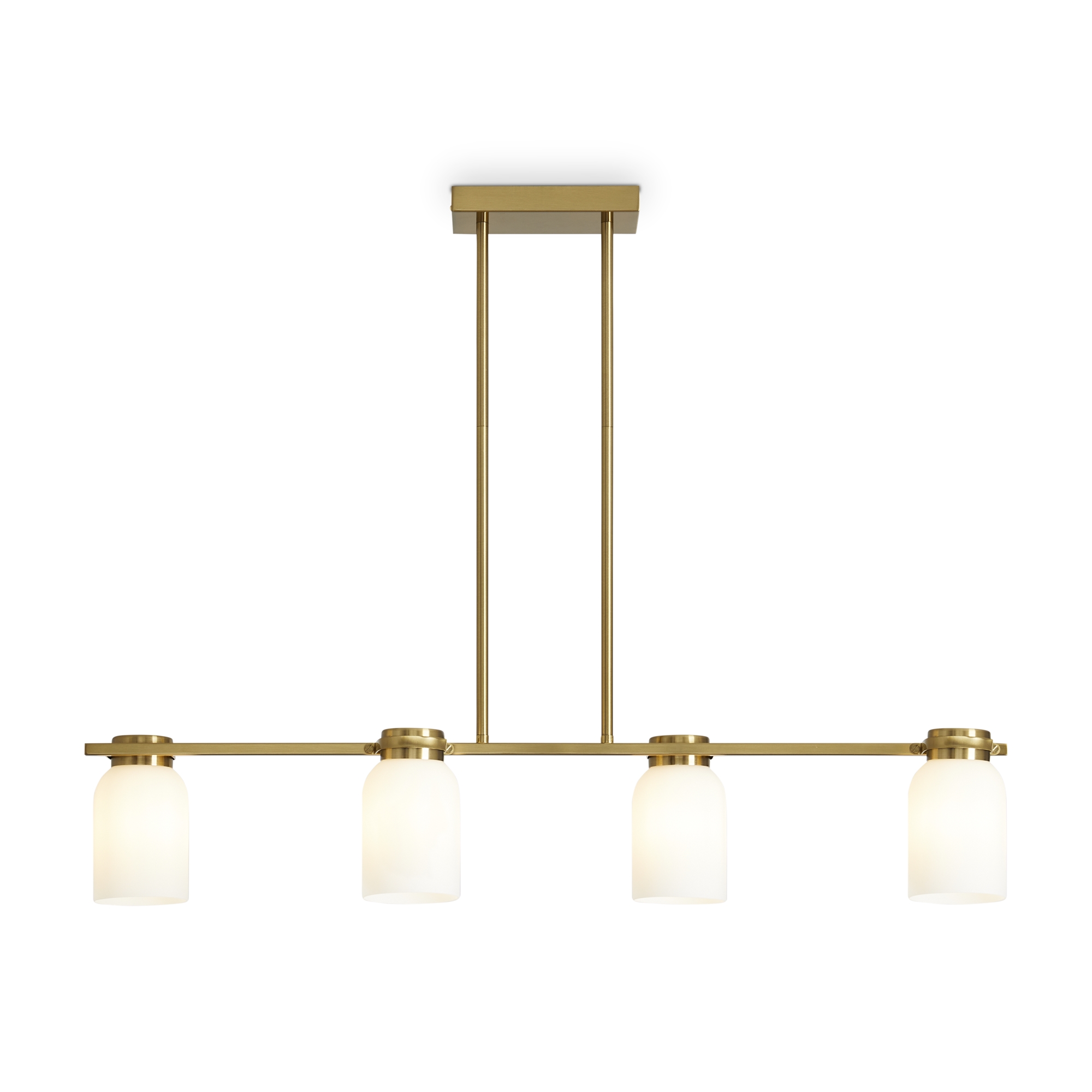 Арматура из металла. Цвет латунь. Плафоны из белого стекла новой необычной формы. Два варианта светильников — потолочные и бра. Подходит для помещений с низкими потолками. Источник света — лампа. Цоколь E14.