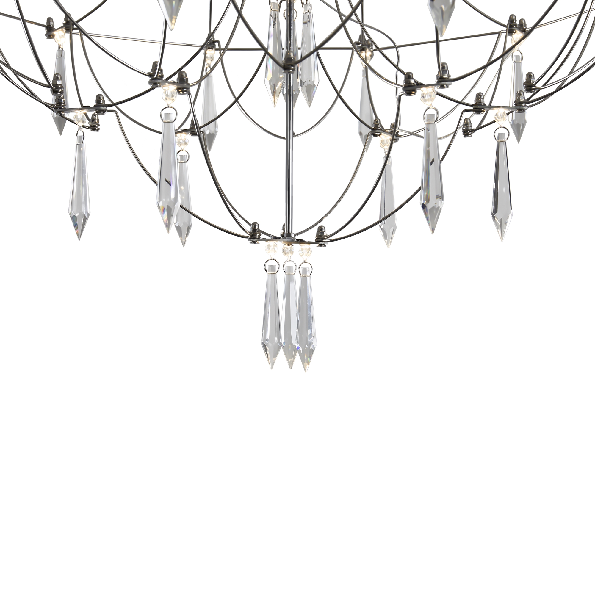 Арматура - хромированная нержавеющая сталь. В соединениях арматуры Led источник света и декоративные элементы из хрусталя в виде капелек. Цветовая температура 3000К.
