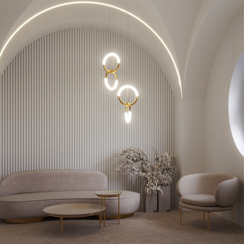 Материал арматуры — металл. Цвета — черный, золото. Положение световых колец регулируется. LED-источник света закрыт матовым рассеивателем. Цветовая температура 3000К. Высокий индекс цветопередачи 90Ra.