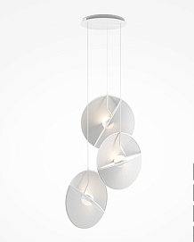 Арматура и плафон из металла и акрила. Цвет — белый. Декоративный светоотражающий элемент из полупрозрачной текстурированной ткани. Регулируемая высота. LED-источники света с цветовой температурой 3000К.