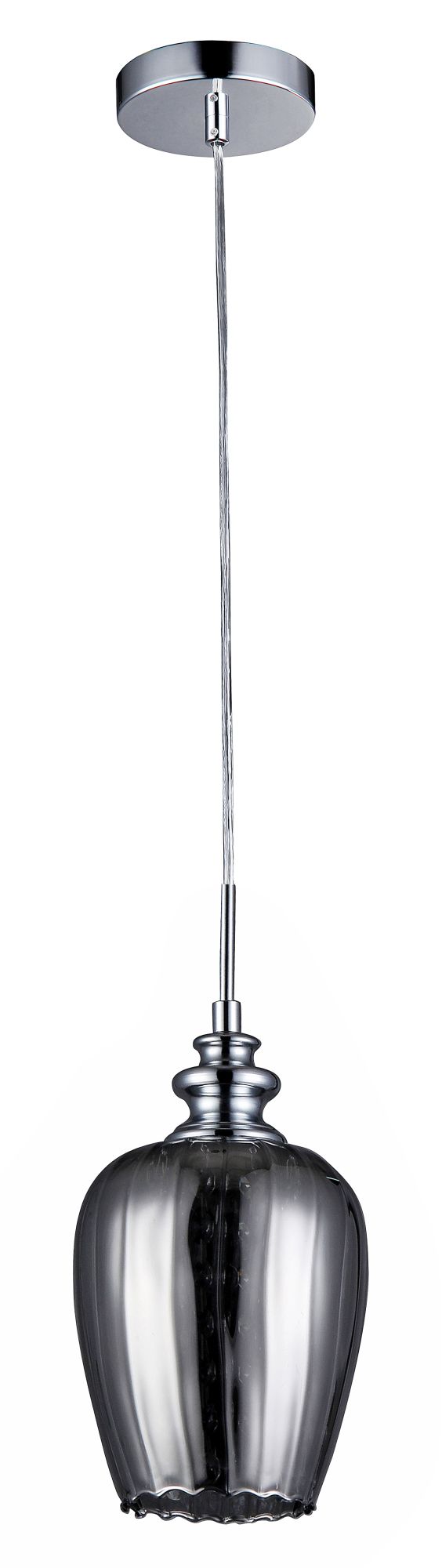 Небольшие светильники с характерными чертами в конструкции станут изюминкой любого интерьера. Изысканная форма стеклянных плафонов сочетается с элегантными подвесками из кристаллов. Свет, отражаясь от тонированной поверхности стеклянной сферы, переливается и играет на их гранях. Арматура сделана из хромированного металла. Высоту подвесных светильников можно отрегулировать длиной шнура.