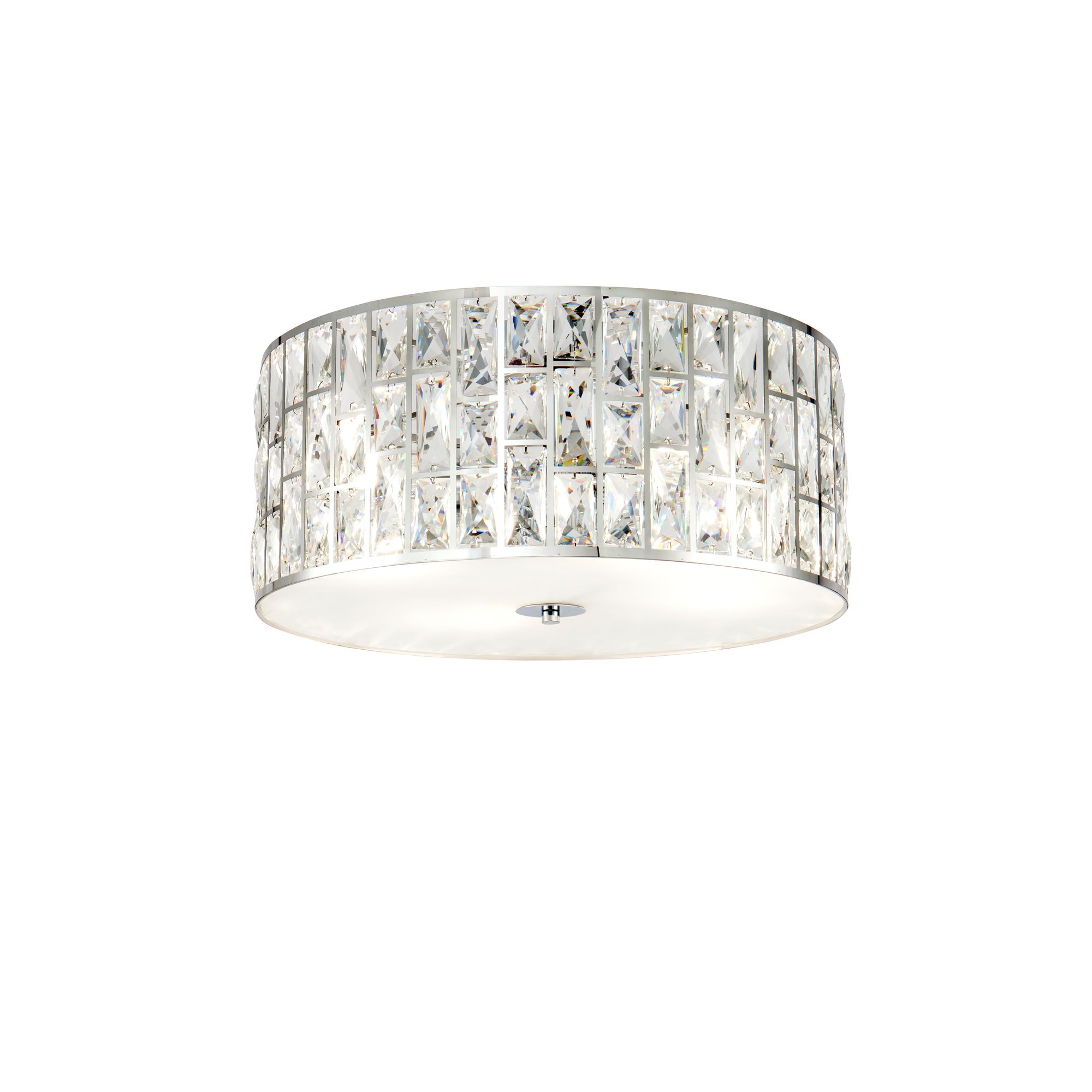 Металлическая арматура, цвет – хром. Каркас абажура – металл, декор – прозрач ный хрусталь. Потолочные модели с рассеивателем из матового стекла. Высота подвесных светильников регулируется.