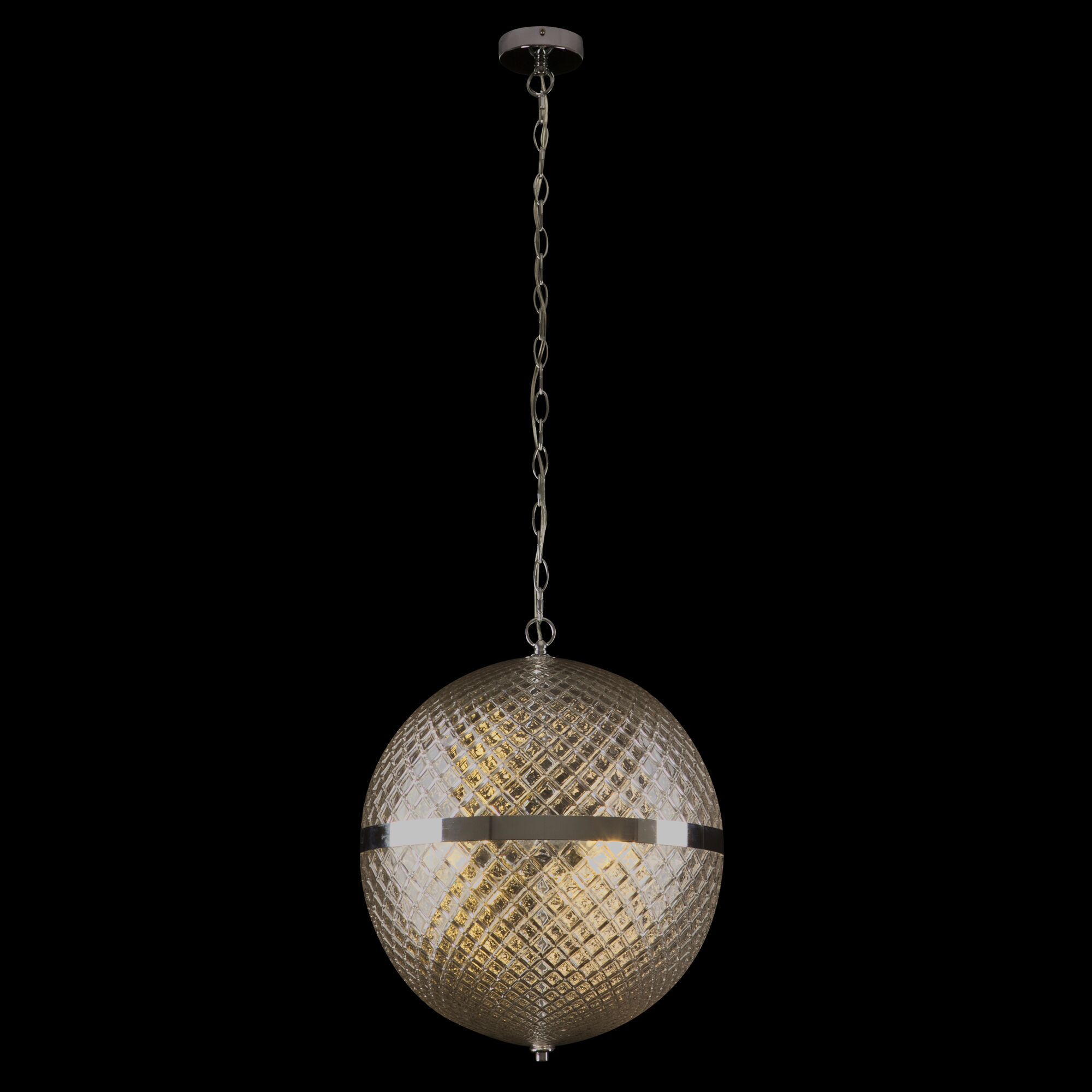Арматура – металл, цвет – хром. Плафон – прозрачное выдувное стекло. Сферическая форма с фактурным рисунком. Регулируемая высота.